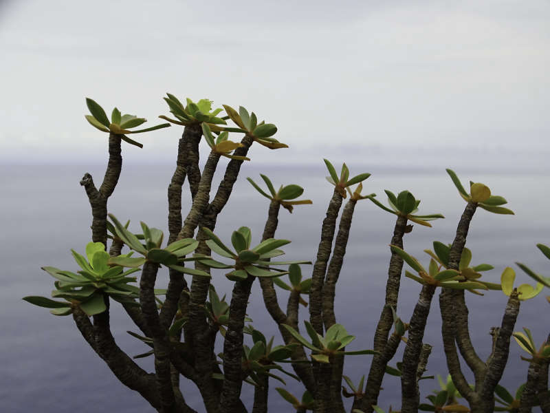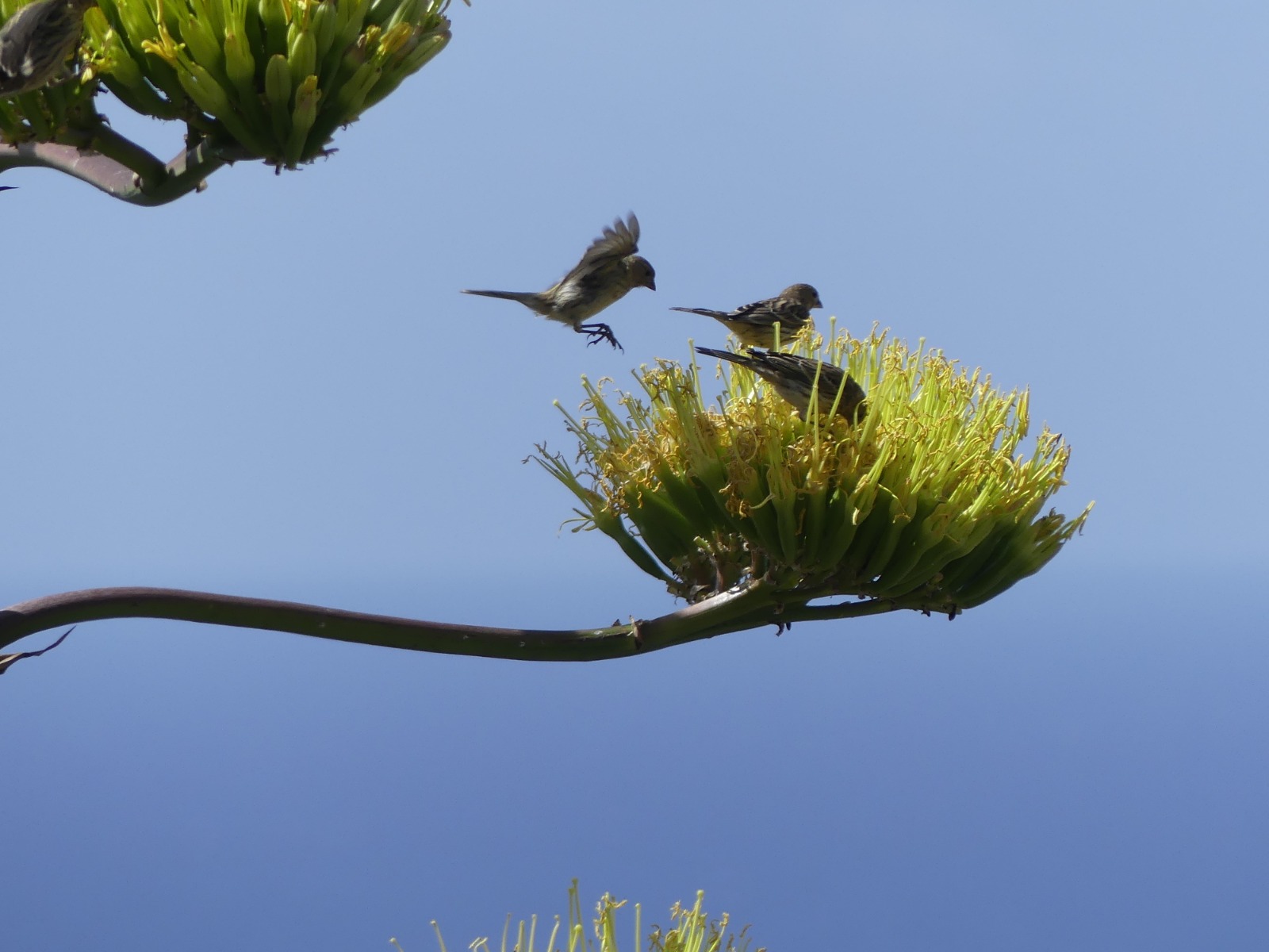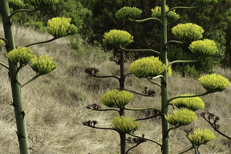 Dank seines warmen Klimas ist El Hierro auch zur Heimat von vielen Exoten geworden, die aus aus anderen Ländern eingeführt wurden. Tropische und subtropische Pflanzen gedeihen hier besonders gut und erfreuen die Sinne mit ihrer Farbenpracht und ihren Düften. Die Schwanenhalsagave (Agave attenuata) stammt ursprünglich aus Mexiko und ist in El Hierros Gärten sehr bliebt, da sie eine riesengrosse schwanenhalsartige Blüte entwickelt, die viele Insekten anzieht.